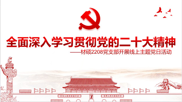 为深入学习贯彻党的二十大精神,增强支部成员的党性修养,11月7日晚,材料学院硕士2208党支部于线上开展了以“全面深入学习贯彻党的二十大精神”为主题的党日活动,党支部全体成员参与本次活动。