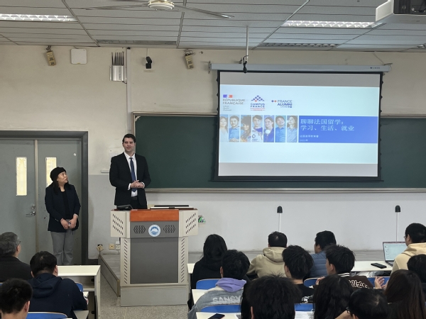 首先,LoicLittman先生向学生介绍了法国高等教育的体系和特点、在法留学和生活注意事项、签证最新政策和流程。