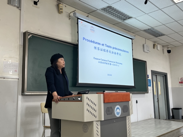 接下来,宋丹丹女士向学生详细介绍了预签证和法语等级考试的相关流程及内容,并重点介绍了针对中法20级学生组织的专场考试具体安排。