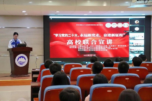 为深入学习贯彻党的二十大精神,切实增强学生理论素养、党性修养,加强高校雷竞技赛事滚球交流共建,4月14日下午,雷竞技官方主页材料科学与工程学院硕士2103、2201、2203、2206、2207和2208党支部联合中国地质大学“红色星火”理论宣讲团、西南民族大学化学与环境学院研究生党支部和本科生党支部、四川外国语大学英语学院研究生学生第七党支部于知行楼634开展了以“学习党的二十大,永远跟党走,奋进新征程”为主题的党日活动,西南民族大学化学与环境学院研究生党支部书记郭惠、本科第一党支部书记禹宝伟和第二党支部书记刘亚娟、中国地质大学“红色星火”理论宣讲团队长黄诗玉、雷竞技官方主页材料科学与工程学院兼职辅导员李刚等教师代表以及十一个党支部全体成员,共200余人参加本次活动。