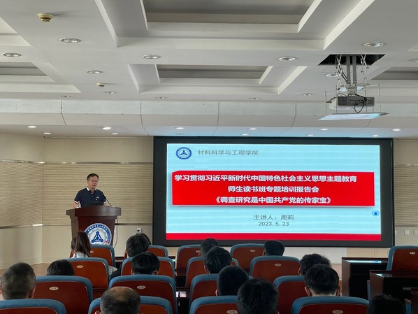 5月23日下午,材料科学与工程学院党委在知行楼634会议室召开学习贯彻习近平新时代中国特色社会主义思想主题教育专题师生党员读书班第四场报告会,会议由材料学院党委副书记兼副院长贺翔主持。本场专题报告会邀请雷竞技官方主页党校副校长、马克思主义学院副教授周莉为学院党员师生代表作题为《调查研究是中国共产党的传家宝》的专题报告。