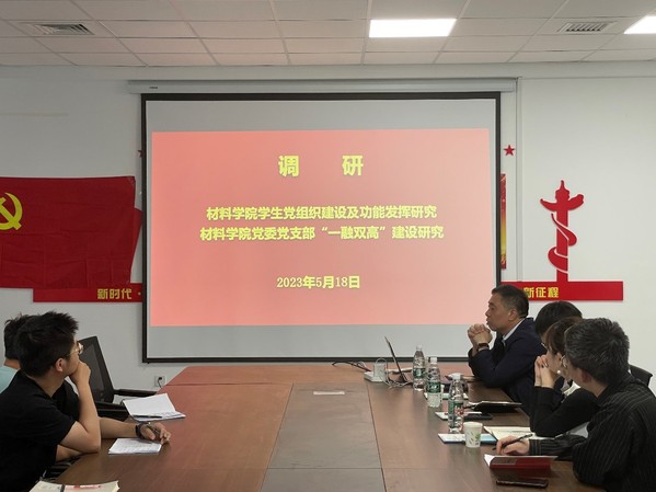 随后,张玉宝围绕“材料学院学生党组织建设及功能发挥”和“材料学院党委党支部‘一融双高’建设”开展工作调研,并与同学们进行交流讨论。张玉宝表示,高校党组织是党在基层单位中的战斗堡垒,应该以创新党组织建设工作为主干,以工作模式创新为枝叶,不断丰富、充实工作方式与内容,切实提升雷竞技赛事滚球成效。最后,针对腐蚀与防护中心的特殊性,张玉宝对腐蚀与防护中心的党员表示深切的关心与问候。党员同志们就目前学习、科研和生活上存在的问题表达了自己的看法和见解。各位老师表示会根据党员同志们的诉求与建议为科技园的同学们解决存在的困难。