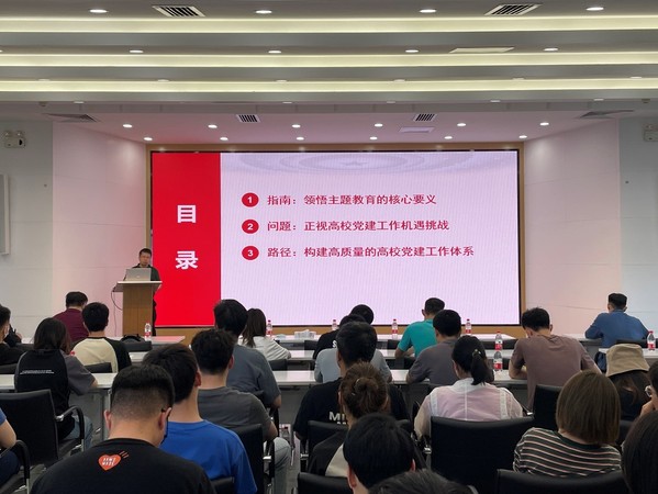 在专题报告中,姜玉原依托大量历史资料和生动实例,从新民主主义革命时期、社会主义革命和建设时期、改革开放和社会主义现代化建设新时期和中国特色社会主义新时代四个时期,为同学们系统、全面讲述了中国共产党的奋斗历程和学习贯彻习近平新时代中国特色社会主义思想主题教育的核心要义。随后,他沿着习近平总书记的高校考察调研足迹,围绕技术板块、技术手段、技术驱动三个部分为同学们生动阐述了新时代党的建设伟大工程、高校雷竞技赛事滚球的机遇与挑战、构建高质量高校雷竞技赛事滚球体系的目标与路径。姜玉原表示,高校雷竞技赛事滚球应该坚持大抓基层的鲜明导向,以党建引领基层治理,发挥专业优势和岗位特点,提升党员体验感和参与度,服务社会、实现成长,把基层党组织建设成为有效实现党的领导的坚强战斗堡垒。
