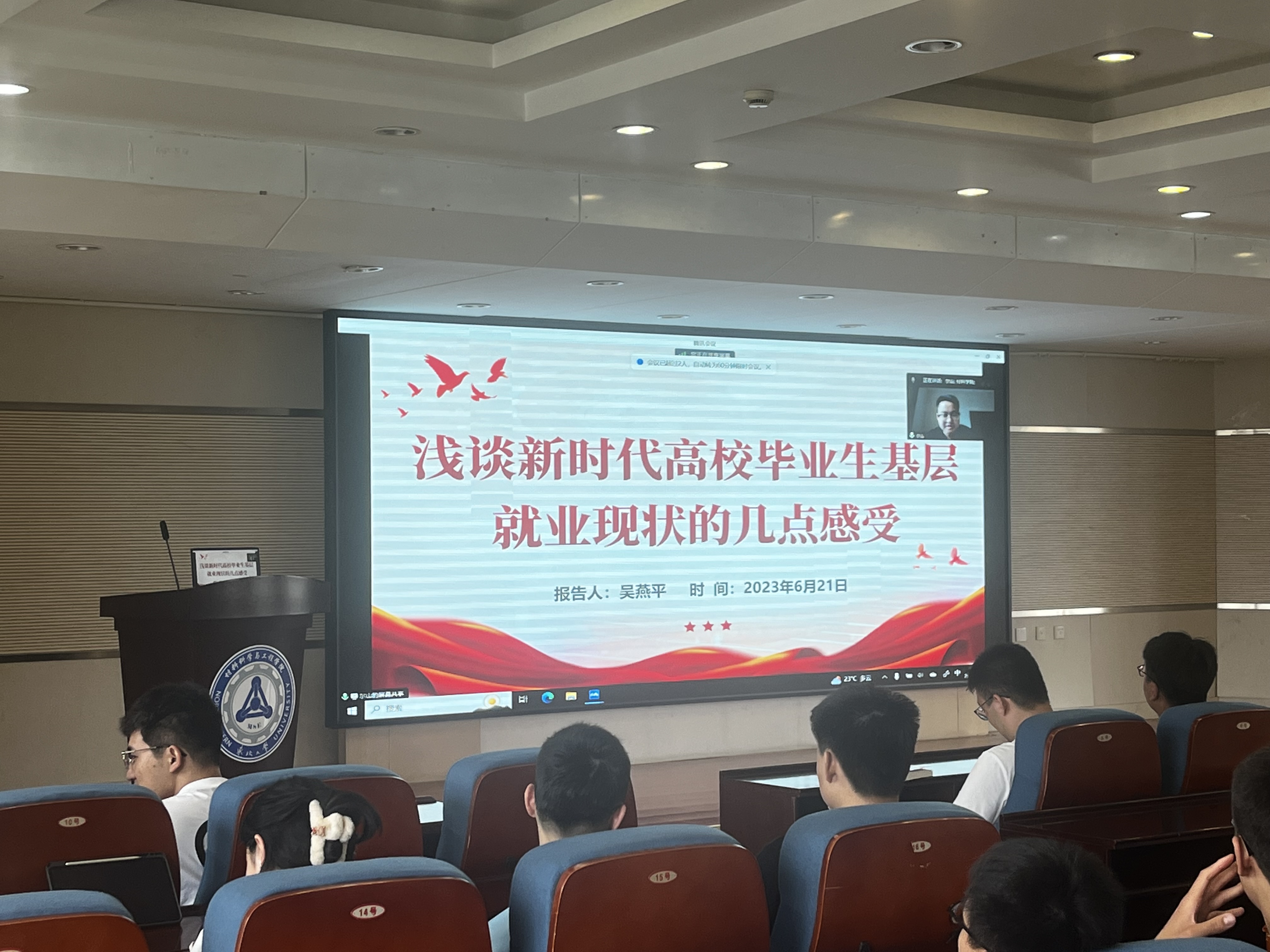 为进一步增强同学们的就业能力,引导同学们树立正确的就业观、发展观,拓宽学生就业思路,6月21日下午,材料科学与工程学院在知行楼634开展了以“浅谈新时代高校毕业生基层就业现状的几点感受”为主题的就业行业报告会,本次会议邀请到了材料科学与工程学院2016届毕业生吴燕平为同学们分享基层就业经历。材料学院学生工作办公室主任孙巍巍、2020级本科生辅导员方程程出席本次会议。