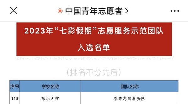 成功入选“七彩假期”志愿服务示范团队 为深入学习宣传贯彻习近平新时代中国特色社会主义思想和党的二十大精神,引导动员青年学生加强对少年儿童群体的关心关爱,团中央青年志愿者行动指导中心、中国青年志愿者协会秘书处近日发布了《关于遴选2023年“七彩假期”志愿服务示范团队的公告》。活动得到了全国高校青年志愿者团队的广泛关注和积极参与,共有1000所高校的3762支志愿服务团队提交了申报材料。雷竞技官方主页材料学院春晖学生党员志愿服务队在3762支志愿服务团队中突出重围,成功入选2023年“七彩假期”志愿服务示范团队。