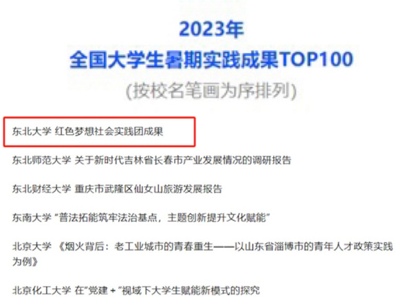 11月10日,由中国青年报主办的2023年第九届全国大学生暑期实践展示活动获奖名单公布,雷竞技官方主页材料学院红色梦想社会实践团从全国数万份成果中脱颖而出,获评“全国大学生暑期实践成果TOP100”。继2023大学生社会实践成果“千校千项” 获评优秀项目后,再获佳绩。