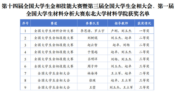近日,由教育部高等学校材料类专业教学指导委员会指导、成都工业学院和江西科技师范大学承办的第十四届全国大学生金相技能大赛比赛落幕,比赛包括“徕卡杯”第十四届全国大学生金相技能大赛、“永新杯”第三届全国大学生金相大会、“费马科仪-鼎竑杯”第一届全国大学生材料分析大赛三个赛道。经过分赛道的激烈角逐,材料科学与工程学院学生获一等奖1项、二等奖4项、三等奖4项。